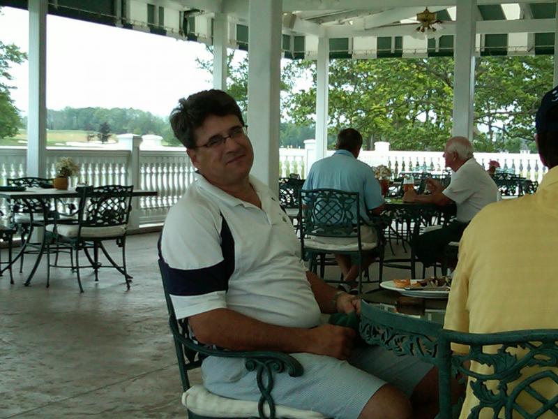 Ron "RJ" Johnson dining on the patio and sporting a new look.